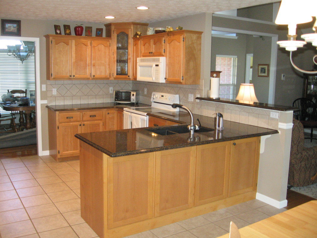 Changed the layout of the kitchen. The bar is new, the rest is old.