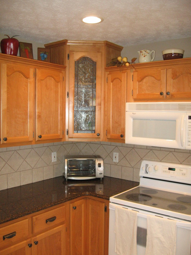 Removed the panel from corner cabinet door to replace with leaded glass.